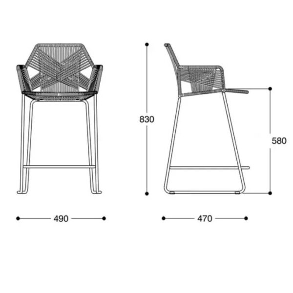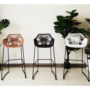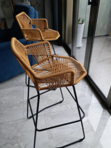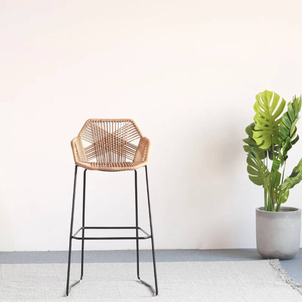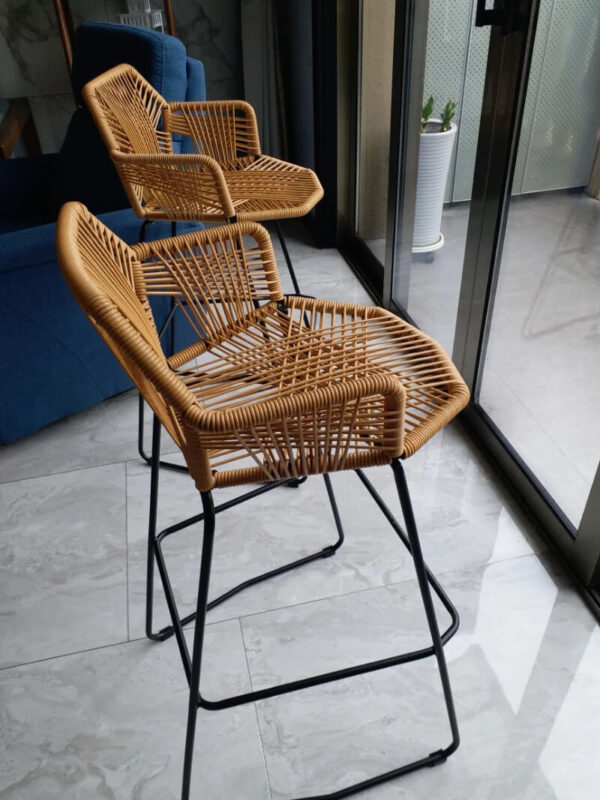 Moderni baro/pusbario kėdė su ratano atlošu.