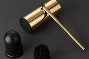 Pastatomas, nerudyjančio plieno tualeto šepetys.