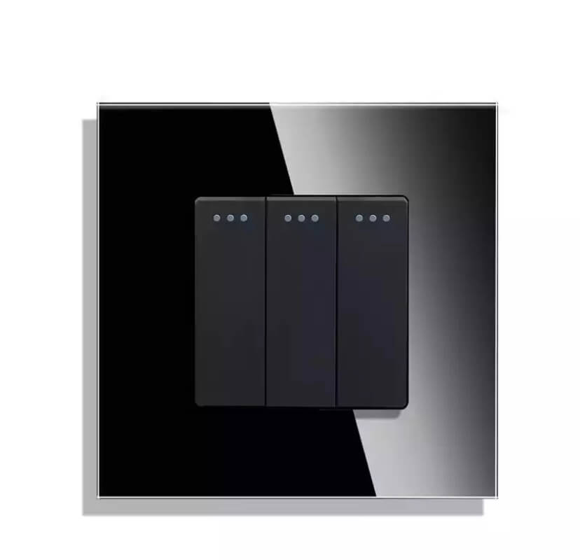Elektros jungikliai su juoda stiklo plokšte.