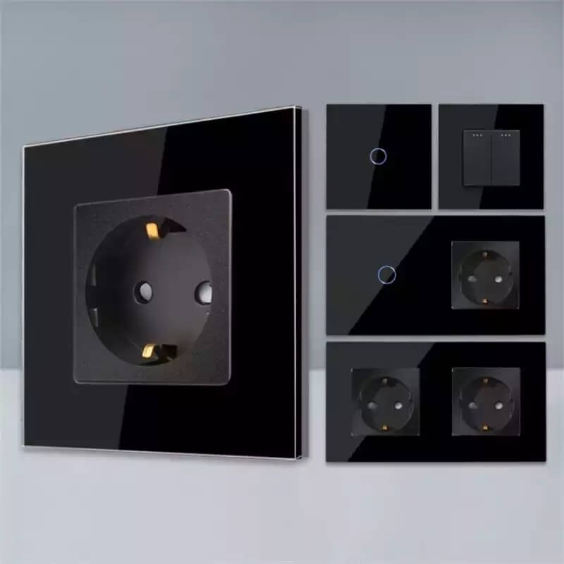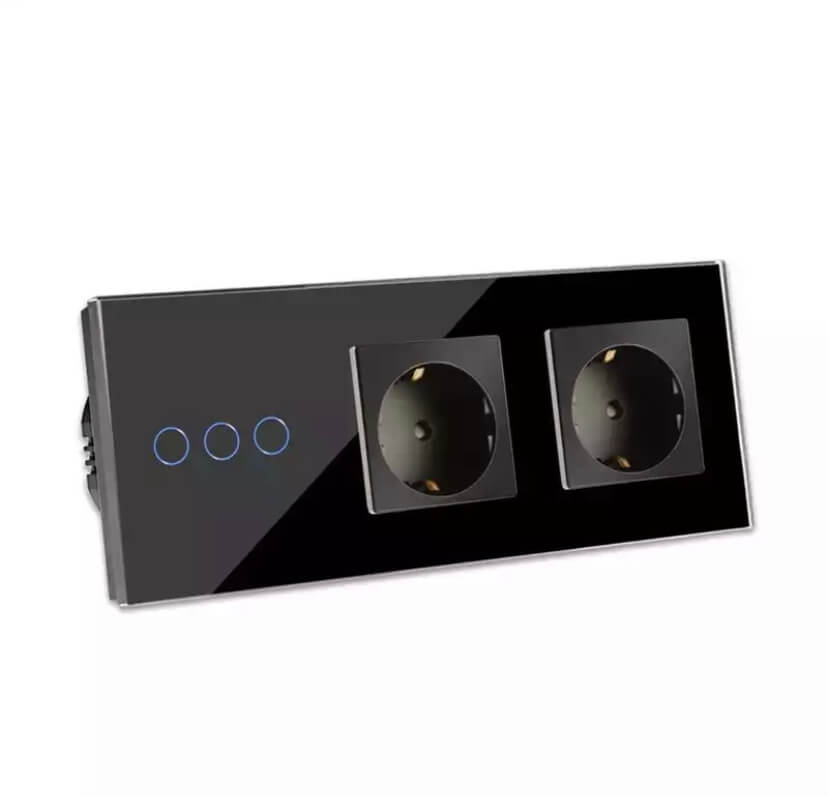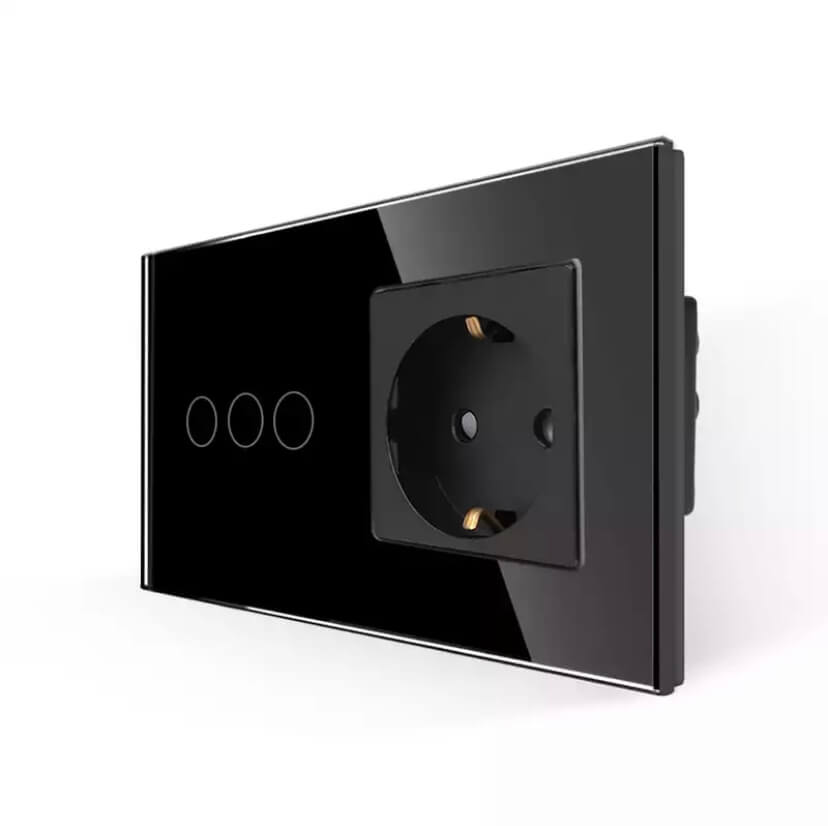 Elektros jungiklio ir rozetės junginys su stiklo plokšte