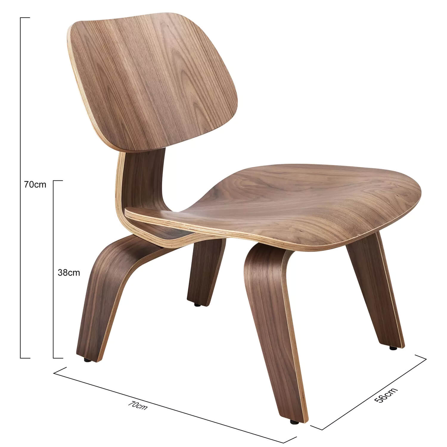 Medžiagos: suformuota penkių sluoksnių sėdynė ir atlošas, guminiai amortizatoriai, medinis rėmas. Atlošas / sėdynė: suformuota fanera su uosio arba riešutmedžio lukštu.