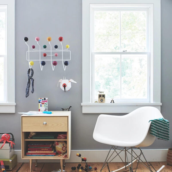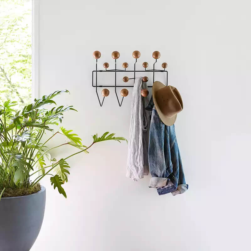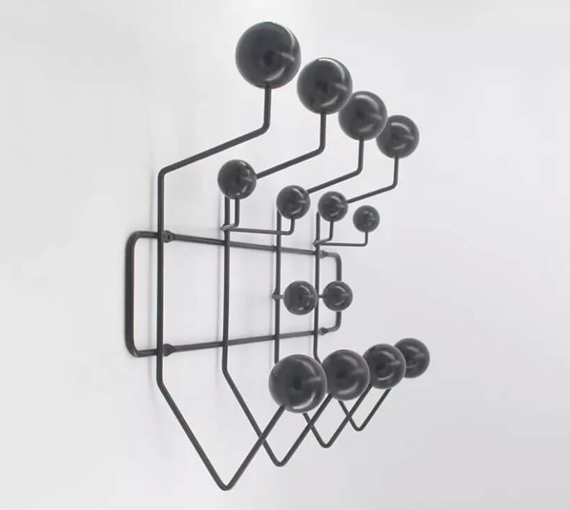 Klasikinė namų interjero detalė, žaisminga, deranti įvairiuose interjeruose. Panaši į Vitra hang it all kabyklą.