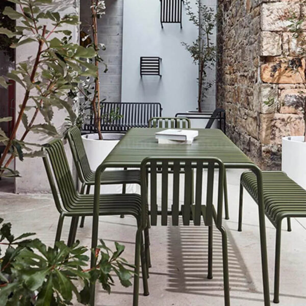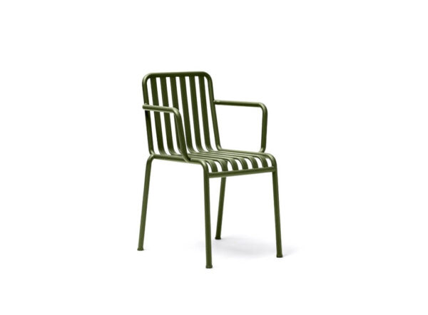 Minimalistinė , išskirtinė, metalinė lauko ar vidaus kėdė su porankiais. Labai panaši į skandinavų Palissade gaminį.