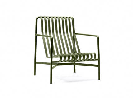 Minimalistinė , išskirtinė, metalinė lauko ar vidaus kėdė su porankiais poilsiui. Labai panaši į skandinavų Palissade gaminį.