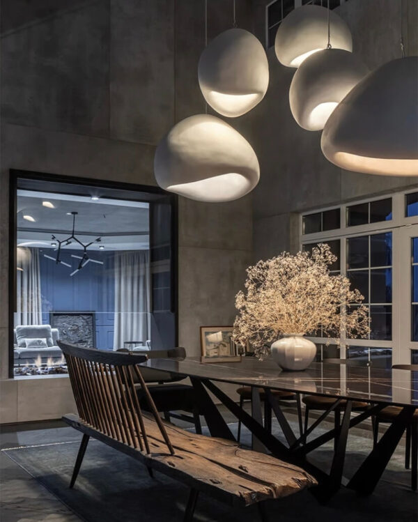 Skandinaviško stiliaus, minimalistiniai, išskirtinio dizaino pakabinami šviestuvai.