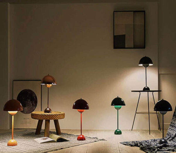 Pastatomas šviestuvas prie lovos miegamojo stalinė lempa. Panašus į Flowerpot šviestuvą.