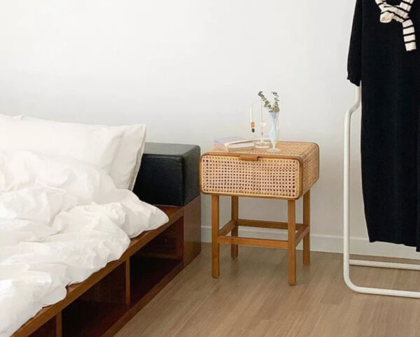 Minimalistinis, modrnus ratano šonininis staliukas.